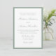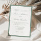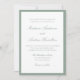 Create a soft, romantic first impression with this sage green wedding invitation, accented by a muted green border that brings a natural, botanical feel to the design. The couple’s names are showcased in graceful calligraphy, followed by neatly arranged wedding details in classic serif lettering. Ideal for garden weddings, outdoor ceremonies, and nature-inspired celebrations, this colorway offers a calm, sophisticated look with an organic touch.