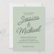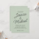 This soft sage green wedding invitation offers a perfect blend of modern elegance and subtle charm. Featuring handwritten script names paired with minimalist block text, the clean layout stands out against a soothing pastel green background. Ideal for spring and summer weddings, garden ceremonies, or nature-inspired celebrations, this design brings a refreshing and romantic touch to your wedding suite. Easily personalise with your names and details for a beautifully cohesive presentation.