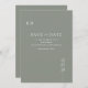 Easily personalise your save the dates with this editable wedding template. Features minimal elegant typography design in sage green colour.