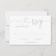 A simple elegant sage green script heart kindly reply RSVP card with your details set in chic typography. Designed by Thisisnotme©