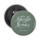 Modern Sage Green Elegant White Script Wedding Bottle Opener