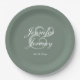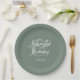 Modern Sage Green Elegant White Script Wedding Paper Plate