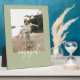 Modern Sage Green "Engaged" Script Photo Plaque. Personalize this minimalistic and elegant custom photo plaque with your names, engagement date, and a favorite engagement photo. Makes a great unique keepsake for couples.