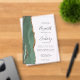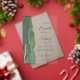 The left-hand edge of this elegant modern wedding invitation features a sage green watercolor agate border trimmed with faux gold glitter. The customisable text combines handwriting, copperplate and italic fonts in charcoal grey on a clear background.