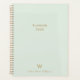 Modern Sage Green Gold Script Monogram Planner. A modern, elegant monogram design with gold handwritten minimalist script typography and sans serif block typography on an elegant pale pastel Sage Green background. The monogram and name can be easily personalised.