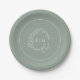 Modern Sage Green Leafy Crest Monogram Wedding Paper Plate