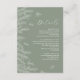 Share essential wedding details with understated elegance using this custom card, beautifully adorned with hand-drawn botanicals. The soothing sage green background, highlighted by delicate white foliage, creates a serene and inviting presentation. This refined botanical design ensures all your important information is conveyed with natural beauty and graceful clarity.