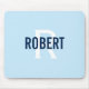 Modern light blue men monogram name mouse pad. Personalise with your name and initial.