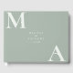 Modern Sage Green Minimalist Wedding Guest Book. Features bold monogram typography and minimal graphic design.