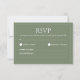 Make your wedding stationery effortlessly stylish with this modern, minimalist RSVP card in sage green tone. Its clean, elegant design and simple layout make it easy for guests to respond, confirm number of guests and food choices while keeping your wedding look cohesive and stylish. Perfect for couples who want a chic, classic, and minimal touch for their special day.