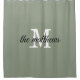 Modern Sage Green Monogram Family Name Shower Curtain