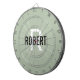 Modern sage green dart board with a black name and white monogram. Personalise with name and initial.