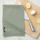 Modern Sage Green Monogram Script Initial Name kitchen towel