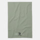 Modern Sage Green Monogram Script Initial Name Tea Towel