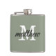 Modern Sage Green Name Monogram Personalised Hip Flask