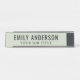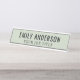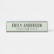 Modern light sage green and white desk name plate includes the employee's name and professional job title in stylish text. Can be fully personalised with your custom text and colours, and your choice of frame colour.