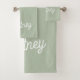 Modern Sage Green Personalised Monogram and Name Bath Towel Set