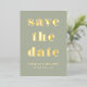Personalized Modern Sage Green Photo Save The Date Gold Foil Invitation.