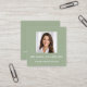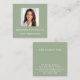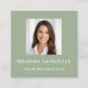 Personalize this minimalist sage green business card template. Customize the modern white script with your name and contact information. Add your photograph to the photo template. Add your business or corporate address for a stylish professional business card. The muted sage green or eucalyptus green is trendy. The minimalist script can be edited with your custom text.