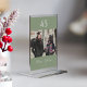 Set the perfect modern ambiance at your wedding with this minimalist sage green table number sign featuring a customisable photo and elegant script names. Designed for couples who love clean, timeless aesthetics, this acrylic table sign helps guests easily find their seats while adding a personal, stylish touch to your reception decor. Fully editable—change the number, photo, names, and date to match your event.