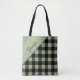 Modern Sage Green Plaid Pattern Name Tote Bag