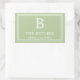 These personalised sage green rectangular stickers are perfect for a wedding, engagement party, bridal shower or rehearsal dinner favours or as an added detail to any item. The design features the trending sage green colour palette with simple, modern fonts. Customise them with your Initial, name and event date to make them one of a kind!