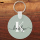 This simple, elegant sage green keychain with your first name in a trendy script font in black and your first initial in a modern cap font in white is perfect for your keys. It's stylish and trendy and yet very classic.