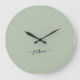 Modern clock with a sage green background and a hand lettered black girly script name. Personalise with your name