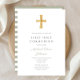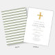 Modern Sage Green Stripes Cross First Communion Invitation
