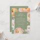 Modern Sage Green Watercolor Floral Wedding . A romantic wedding invitation features a frame of watercolor florals in shades of blush pink and peach. on a dusty green card. Personalise all the of the important details such as bride and grooms names, wedding date, time and location.