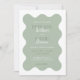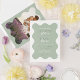 This beautiful wedding invitation is framed by a delicate wave scallop border. The playful yet sophisticated fonts dance across the page, blending whimsy with elegance, and selected words highlighted in deep sage green add a delightful pop of colour. More than just an invitation, it's a prelude to a celebration filled with charm and joy, perfectly suited for couples seeking a mix of fun and sophistication in a design that softly speaks of nature and love.