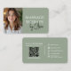 Create a calming, professional first impression with this sage green massage therapist business card featuring space for your photo and a scannable QR code for easy online booking. The soft sage palette evokes wellness, relaxation, and trust—perfect for massage therapists, bodyworkers, estheticians, and holistic wellness providers. Clean typography keeps your name, title, and contact details clear, while the photo area adds a personal touch that helps clients connect instantly. Fully customizable—update your image, QR code, colors, and details to match your branding. Print-ready and designed for a polished, modern look that stands out.
