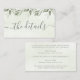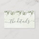 The layout balances a romantic, flowing script for "the details" with a clean, structured serif font for your website and travel information, ensuring everything is easy for your guests to read. Ideal for botanical, garden, or minimalist outdoor weddings, this card provides a sophisticated way to share hotel accommodations and driving directions without cluttering your main invitation.