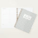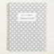 Custom-designed planner notebook featuring white polka dots on sage green colour with personalised name..