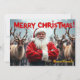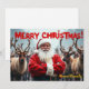 Send a Christmas greeting with a bold twist. This moody, modern design features a stoic Santa Claus standing centre frame with arms crossed, dressed in his classic red suit and fur-lined hat. Behind him, a blur of majestic reindeer creates a sense of depth and mystery, while the distressed red “MERRY CHRISTMAS!” text adds festive contrast. With its cool, wintery tones and cinematic lighting, this card is perfect for those who love a striking, non-traditional holiday aesthetic. Ideal for gifting to friends, coworkers, or anyone who appreciates a unique Christmas vibe.