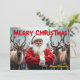Send a Christmas greeting with a bold twist. This moody, modern design features a stoic Santa Claus standing center frame with arms crossed, dressed in his classic red suit and fur-lined hat. Behind him, a blur of majestic reindeer creates a sense of depth and mystery, while the distressed red “MERRY CHRISTMAS!” text adds festive contrast. With its cool, wintery tones and cinematic lighting, this card is perfect for those who love a striking, non-traditional holiday aesthetic. Ideal for gifting to friends, coworkers, or anyone who appreciates a unique Christmas vibe.