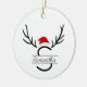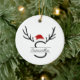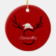 Modern Santa Monogram Antler Christmas Custom Name Ceramic Ornament