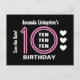10th Birthday Striped Pink Number and Hearts Here's a modern and trendy birthday save the date postcard design with fun lettering. All text is customisable, so you can personalise with a name, change the year if you need to, and add your party details. Fun!