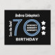 70th Birthday Striped Blue and White Number with Stars. Here's a modern and trendy birthday save the date postcard design with fun lettering. All text is customisable, so you can personalise with a name, change the year if you need to, and add your party details. Fun!