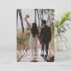 Announce your wedding date to guests with these modern Save the Date Cards. Featuring a full bleed vertical photo, stylish typography, and a dark green back, they exude contemporary elegance. Customise the colours, paper shapes, and sizes to suit your style and wedding theme. Use our design tool to make further modifications if needed. For any assistance, message us anytime!