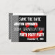 Modern Save the Date Graduation Party Red Black V2 Here's a trendy save the date postcard in black and white with accents of red for a graduation party. Fun! All text is customisable.