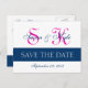 Modern, Simple, Save the Date Wedding Monogram Card Navy Blue and Fuchsia Pink. Design by Elke Clarke©. Fully customisable save the date cards to announce your wedding engagement and upcoming wedding date. Add your information and your monogram initials. You can even change the font and the spacing of the text. An elegant way to announce your special day. Save the Date Wedding Monogram Announcement Card
