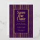 A shimmer of what’s to come. Announce your wedding with grace and brilliance through this elegant save the date card, where modern elegance meets heartfelt detail. The front features radiant foil—available in gold, rose gold, or silver—set against a sharp deep royal purple, clean, timeless layout that speaks to understated luxury. On the reverse, a full-size photo transforms the card into a keepsake, capturing the joy of your journey together. Perfect for couples who value simplicity, sentiment, and a touch of shine.