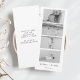This elegant white wedding save the date features a sophisticated design that incorporates a striking black and white photo strip, allowing couples to showcase three cherished images. Perfectly blending style and sentiment, this invitation serves as a beautiful save-the-date announcement, inviting guests to share in the joy of the upcoming celebration. Its timeless aesthetic ensures that it will be a memorable keepsake for all who receive it.