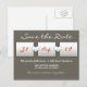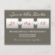 modern wedding save the date postcard with silver metallic design and red date numbers.