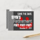 Here's a trendy save the date postcard in black and white with accents of red for a retirement party. Fun! All text is customisable.