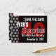 Here's a trendy save the date postcard in black and white with accents of red for a surprise 40th birthday party. Fun! All text is customisable.