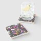 The coasters are gorgeous, a quality feel and heavy weight. They look like a precious archeological find. A rustic stone juxtaposed with a modern floral black and white print. I like the way the print goes slightly imperfect on the cut stone edges giving them a kind-of natural beauty.