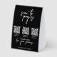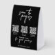 A modern black business paper table tent sign design allowing your customers to connect and pay instantly with 3 payment available payment options. A minimalist personalized scan and pay business table tent sign. Customize the table tent sign with your text and make it your own..