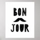 Decorate your precious little one's nursery with this adorable black and white modern scandi Bon Jour with moustache poster. © Julie McIver